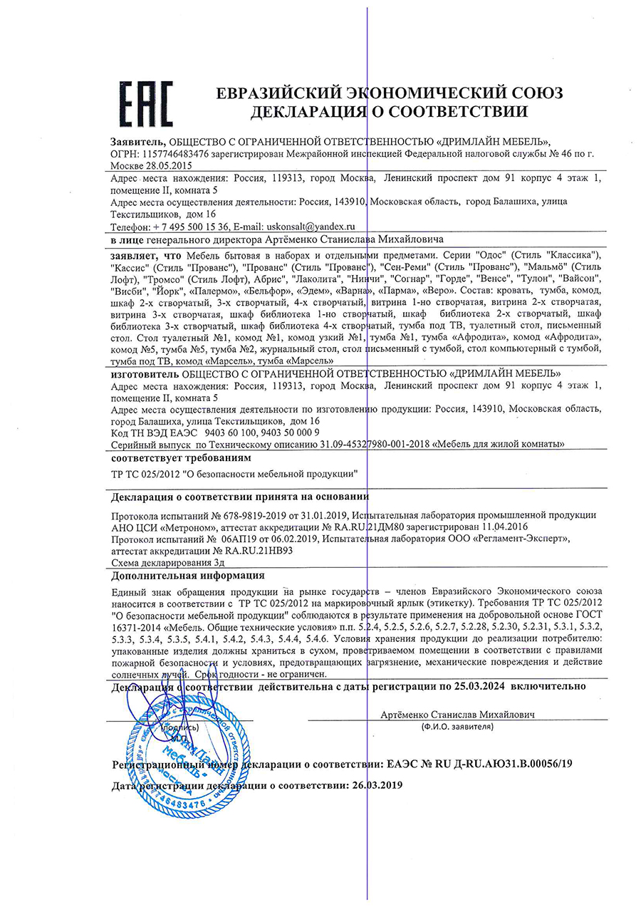 - Продукция имеет сертификат безопасности